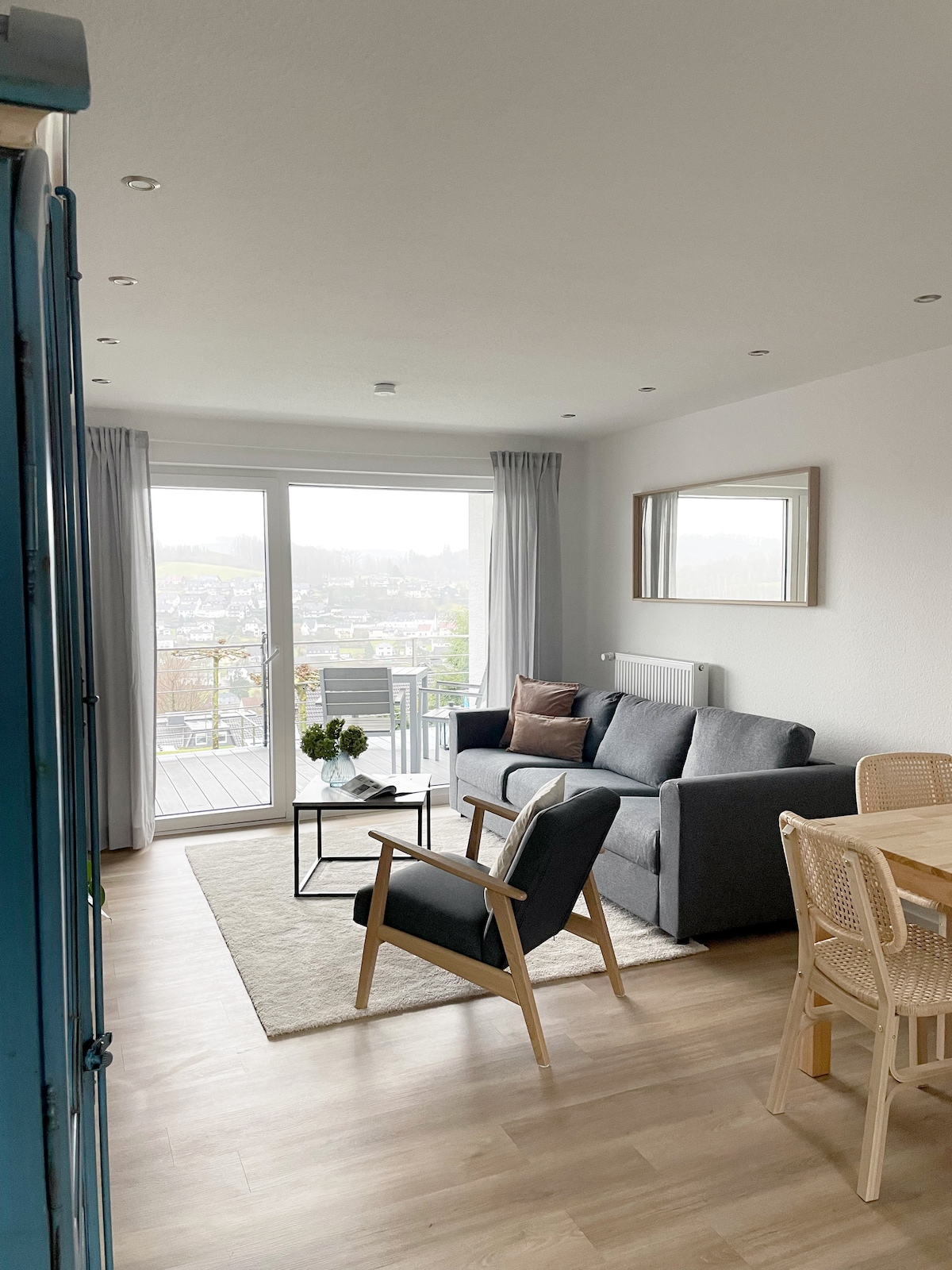 我們時尚現代的度假公寓「Höhlenblick」位於薩爾蘭 (Sauerland) 的中心,是您探索該地區的完美起點。它坐落在森林邊緣的一條安靜的死巷上,四周環繞著大自然,可以俯瞰草地、村莊和巴爾弗文化洞穴 (Balver Kulturhöhle)。