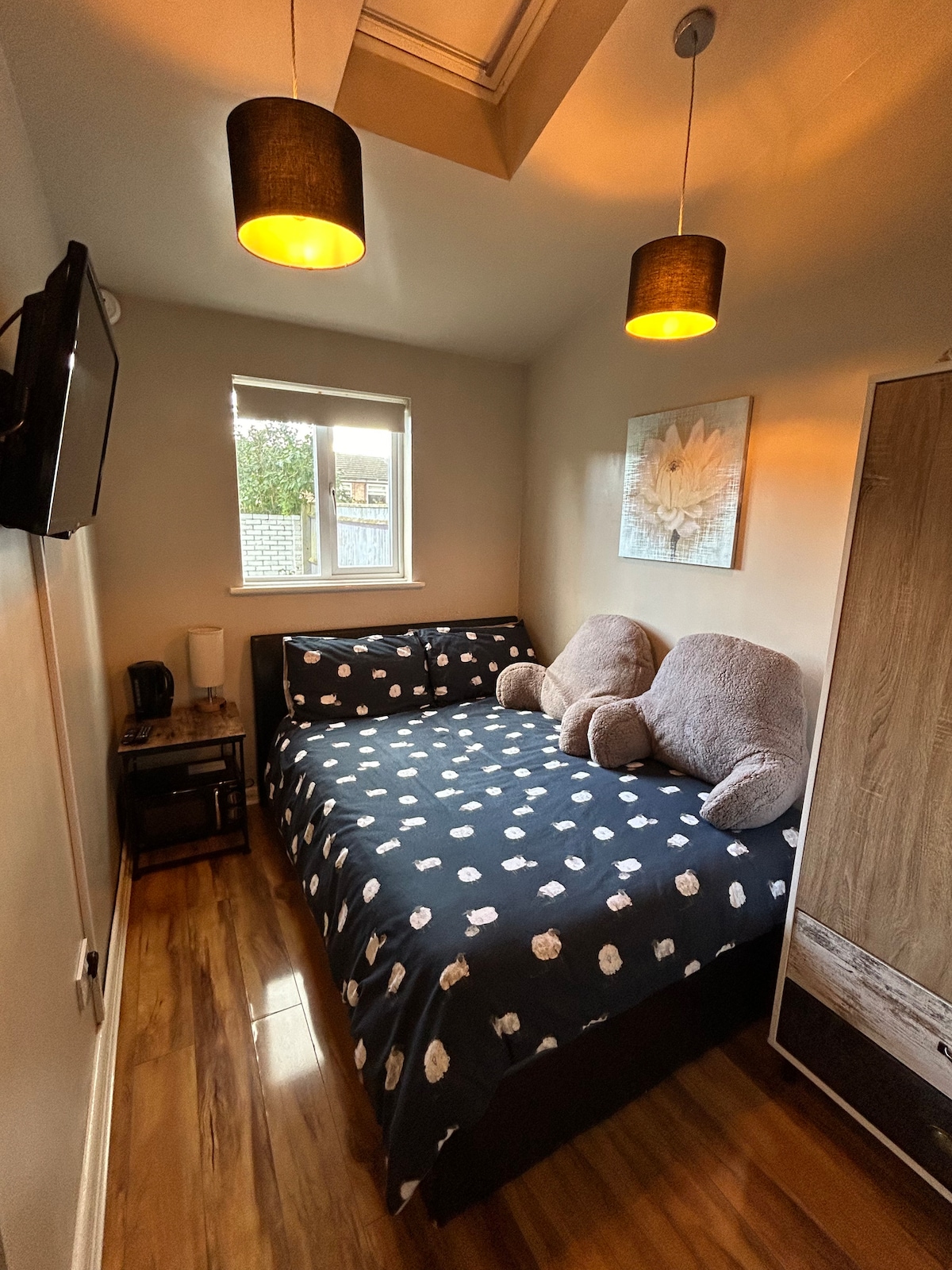 歡迎來到這個舒適的度假屋!這間迷人的 1 房度假屋,配備舒適住宿所需的一切設備。臥室配有豪華床、電視和套房浴室,可增加隱私。在設備齊全的廚房裡用電鍋烹調您最喜愛的餐點。浴室有清爽的淋浴間。在客廳放鬆身心,配有另一臺電視,非常適合放鬆身心。非常適合獨自旅行者或情侶入住,這個空間是您完美的家外之家。當地景點:NEC、Stoneleigh Show Ground