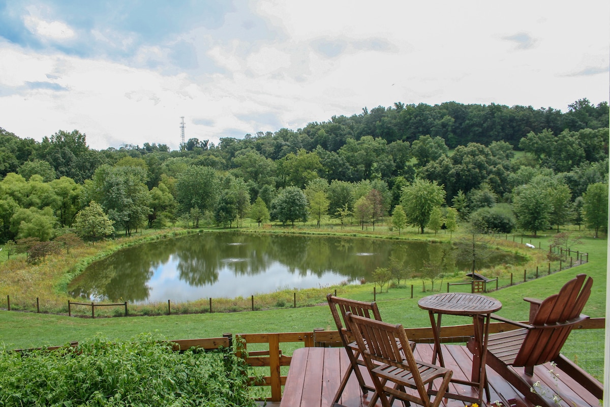 Quiet remote atmosphere only mins away from the main highway. The newly renovated spring house of a farm built in 1847 provides a quaint space to relax complete with a living area that overlooks a pond, and separate bedroom and bathroom. The property is a 10 acre property with a tennis/pickleball court.