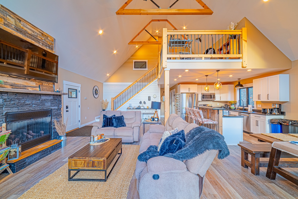 North Star Hideaway –靠近星期日河的舒適度假屋 逃到North Star Hideaway ,這是一個全新的4BR/3.5BA房源,距離Sunday River僅10分鐘!可容納 12 人,設有遊戲室和營火設施。 🛏️ 臥室:(4 間臥室) 樓上:2 間特大套房,配有智慧電視、迷你分體式空調和套房浴室。 樓下: 1間雙人床房、1間雙層床房( 2套) ,加上一個帶沙發床的額外房間。 🔥 壁爐 | Starlink Wi-Fi | Xbox 遊戲室 | 滑雪鞋櫃 | 燒棉花糖套組 立即預訂,享受冒險與放鬆!