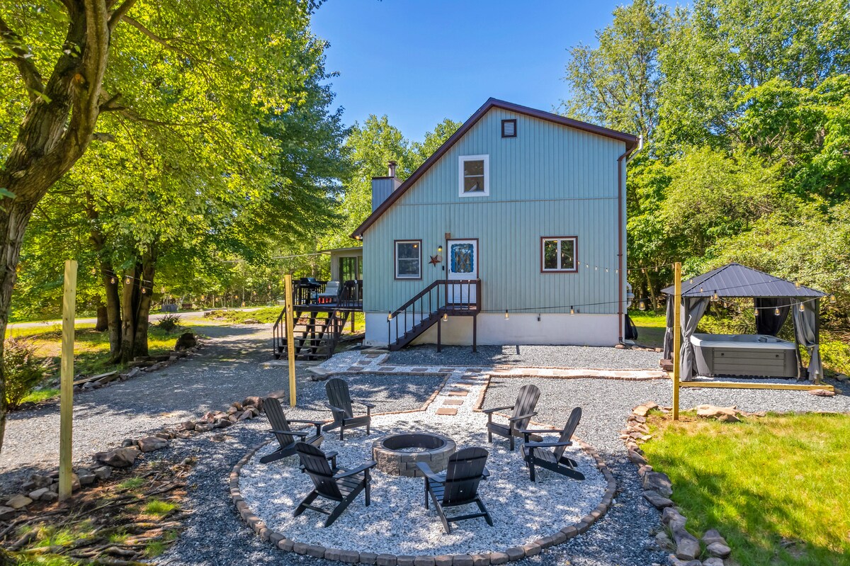 快速開車即可抵達斜坡,步行即可抵達湖畔海灘- Poplar Cottage是一個乾淨、現代化的3床/2浴室,經過精心設計,鼓勵完全放鬆。 ★ 「這個地方太棒了!」 ★ 「絕對值得預訂!」 -設備齊全的廚房 - 2 人座皮艇 -寬敞的露台,配有室外壁爐 - Solo Stove 火坑 -洗衣機和烘衣機 -瓦斯烤爐 -智慧電視 - Sonos喇叭 » 開車 5 分鐘即可抵達和諧湖 » 開車 6 分鐘即可抵達波科諾賽道 » 開車 8 分鐘即可抵達大石頭滑雪度假村