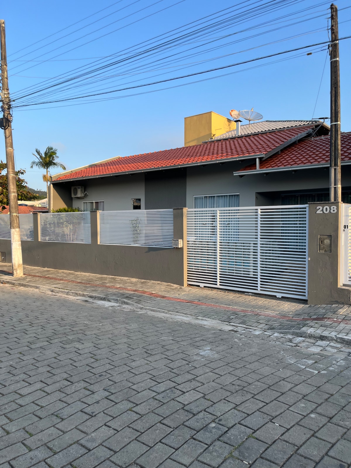 此公告是指上層的黃色房屋。通過樓梯進出。 現代舒適的房子,2間帶空調的臥室、浴室、廚房、帶Netflix的電視、Wi-Fi、床單/浴巾、帶燒烤設備的大美食露臺和1個車庫。 距離Beto Carrero World公園400公尺,將車停在車庫,節省公園停車位,步行即可輕鬆往返。 靠近海灘(約600公尺),沿著街道即可抵達美麗的Armação海灘。