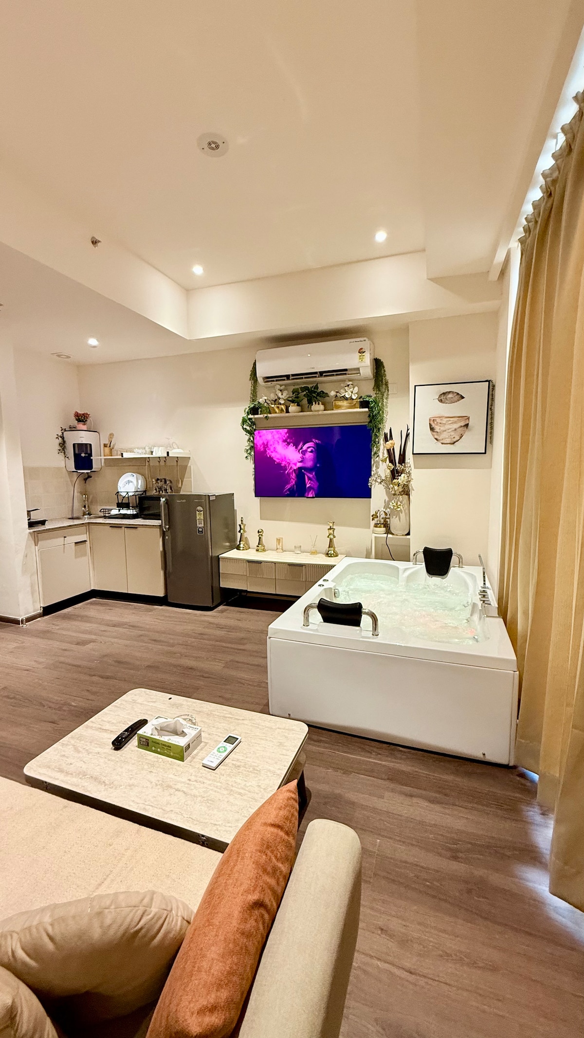 • H13/HEPA 房間空氣淨化器 •每日清潔和乾淨毛巾 • 管理員從上午10: 30至晚上7: 00 •智慧電視,可觀看Netflix、Amazon Prime等。 •高速網路Wi-Fi •距離 Mehrauli Fashion Street(德里最佳夜生活)和 Saket Citywalk Mall 5-7 分鐘 •距離德里地鐵站 5 分鐘 歡迎來到onnyxrooftop 我在南德里、中央NCR策劃了豪華體驗度假勝地。 享受豪華臥室、精緻客廳和私人屋頂涼亭休息室,配有按摩浴缸和酒吧,享受美好時光。