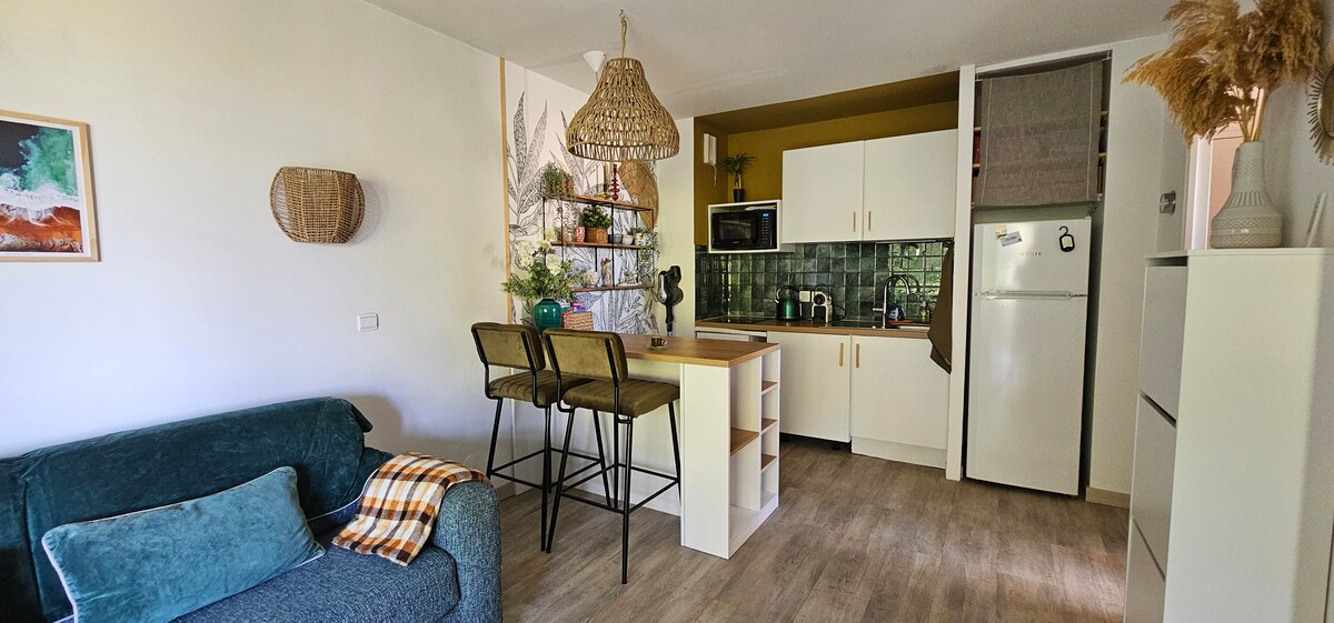 Appartement de 32m² au rez-de-chaussée d'une résidence calme de Ciboure avec Piscine, à 20 min à pied de la Grande plage de Saint-Jean-de-Luz. Entièrement rénové et décoré avec goût. Il dispose d'une place de parking privative, d'une terrasse couverte avec mobilier extérieur avec vue sur la piscine de la résidence. Fonctionnel et confortable pour 4 voyageurs. Entre farniente, visites et activités sportives (surf, balades, randos), tout est réuni pour un séjour exceptionnel.