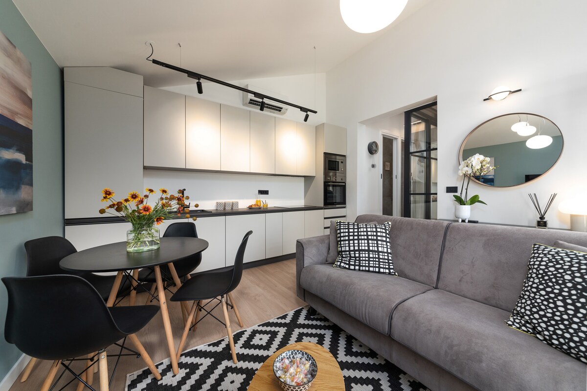 In the countryside, just 10 min away from the Adriatic Seacoast, nestled in the green rolling hills, hides a haven of peace, Villa la Vinella. This unique renovated farmhouse, dating back to the 19th century, with its contemporary design, combining rustic elements and modern architecture, minimalist decor and exquisite details such as the beautiful antique furniture in the living room, will allow you to enjoy the peaceful surrounding with nature at your doorstep.