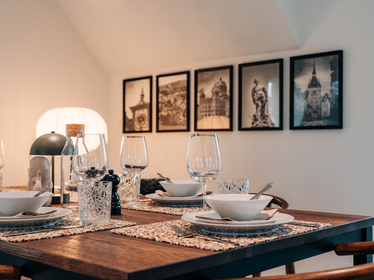 絕對獨立、新裝修和新裝潢的60平方米2.5房間閣樓公寓,位於比爾的中心位置,但非常安靜。 公寓設有一間臥室、一間帶兩張沙發牀的客廳、一間帶浴缸的浴室、私人洗衣塔和設備齊全的廚房,配備您需要的一切。 最大的優勢是浪漫的花園。 沿著Zihl , Aare或Lake Biel步行或騎自行車的理想起點。從Biel火車站乘坐巴士5分鐘。