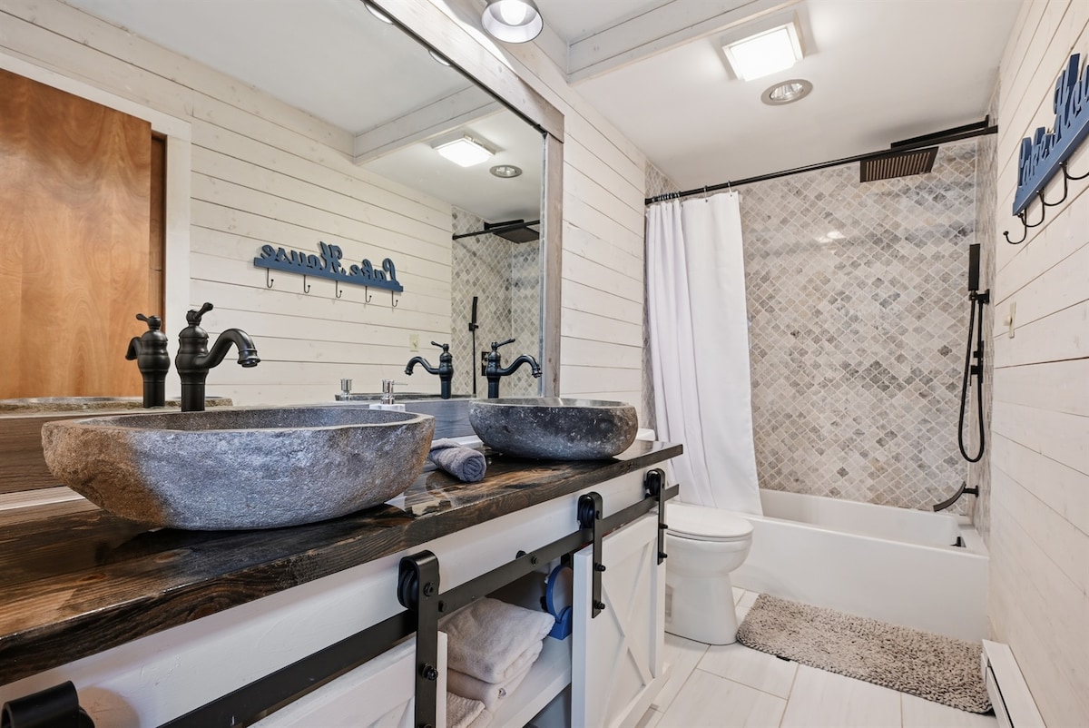 Roomy chalet-WALK2Lake/Ski mts/firepit/hotub/games