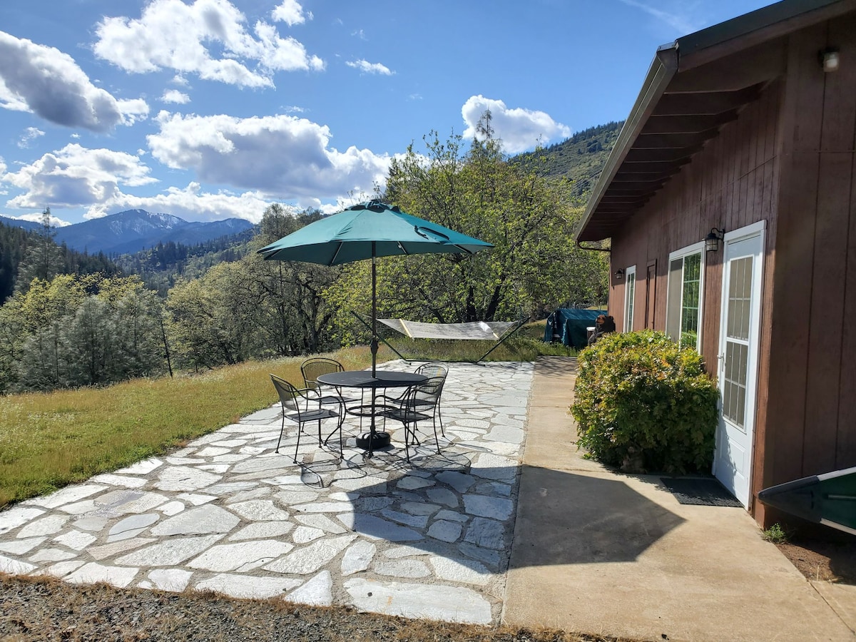 獨特的定制山間小屋,可供遠距工作、健行、山地自行車、泛舟、釣魚或度假。5分鐘即可抵達三一河, 5分鐘即可抵達當地的冥想度假中心。快速穩定的WiFi,支援多個Zoom通話。車道上安裝了大容量2級-40安培電動車充電器。 寵物主人請注意:院子裡有毒橡樹,因此寵物不應該自由漫遊。有小圍欄,沒有毒橡樹。