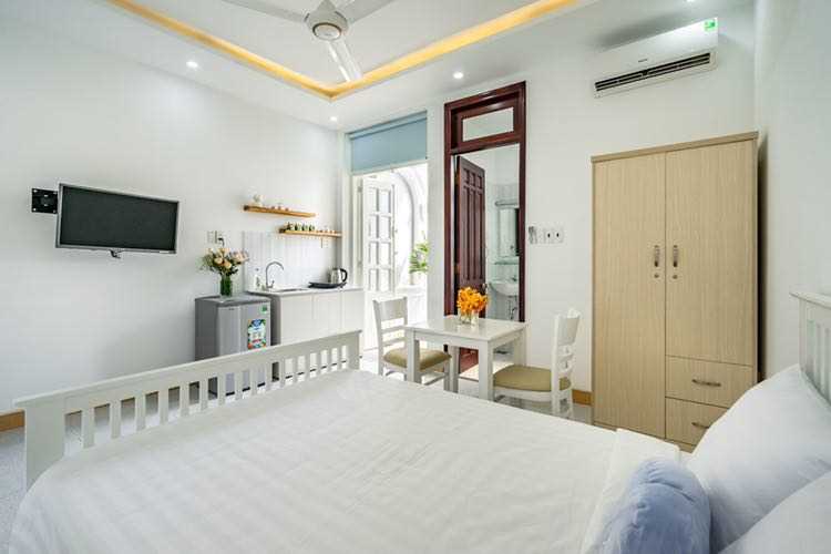 The Cactus Building serviced apartments offer an exciting combination of the modernity of the city and the comfort of nature. - Located right in the center of District 1 - Nguyen Thi Minh Khai street, near Thi Nghe bridge-market, famous Hai An bookstore, Saigon Zoo and Botanical Garden nature... but hidden in the middle of a quiet alley and surrounded by land of food and drink. - Our design aims for peace in the bustling city. The apartment is fully furnished; with many convenient services.