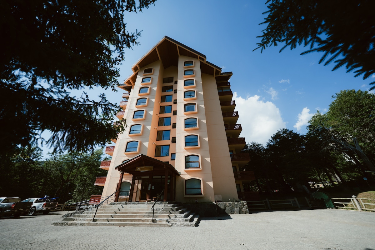 Descubre el refugio perfecto para tus vacaciones familiares en el corazón del Centro de Ski y BikePark Nevados de Chillan. 🏔️ ⛷️:SKI IN-OUT: Ski In-Out, sales y llegas skiando al departamento. 📍UBICACIÓN PRIVILEGIADA: Ubicado en el primer piso del edificio, rodeado de bosques milenarios y vista a las montañas, a pasos de los hoteles. 🏠 REMODELADO: Calefacción Central, Cocina integrada y equipada, camas con scaldasonno (Calienta Camas) , Smart TV, Wifi.
