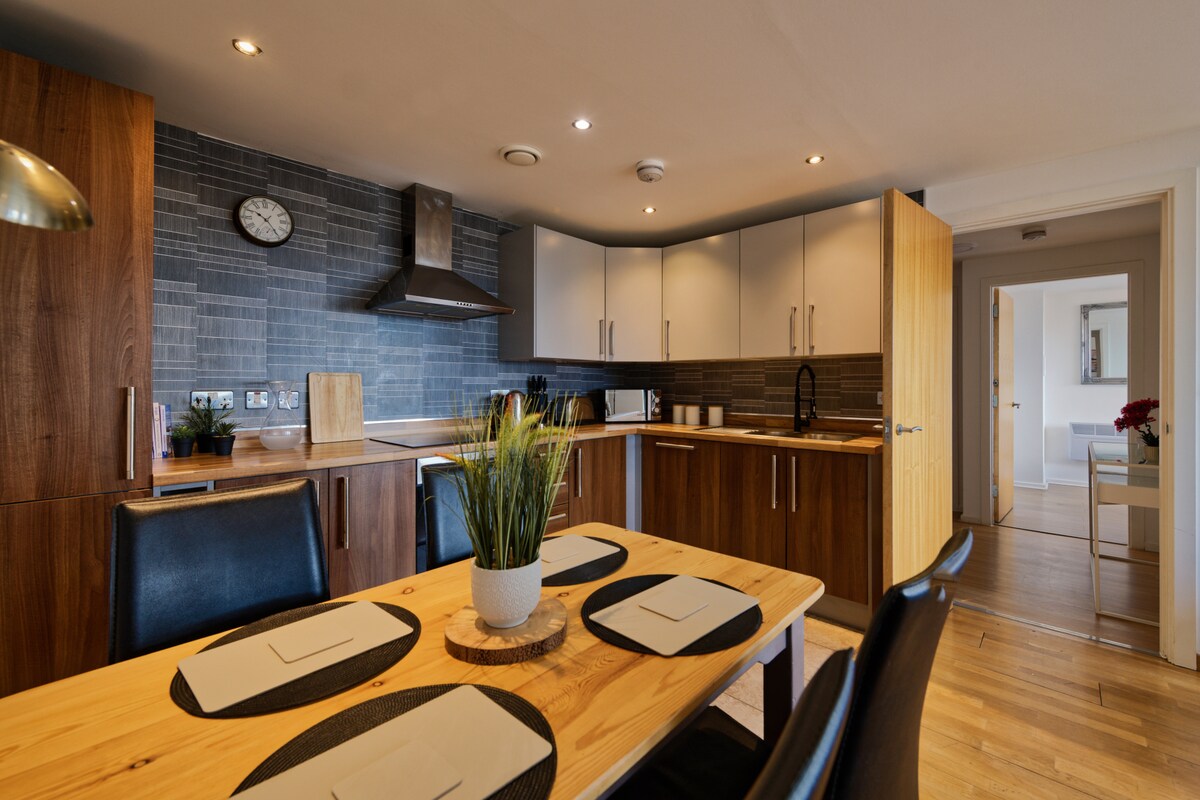 Introducing you to one of the best rated apartments in liverpool with only 5☆ reviews and also in the top 1% on airbnb and guest favourite. It will be your home from home which has your very own spacious open plan kitchen and living room with flat screen Tv and Full Sky package. Plus the biggest balcony in Liverpool. The apartment consists of 2 double bedrooms all your amenities aswell as your own WiFi. Brand new bathroom and shower. Also comes with a very rare free secure parking space.