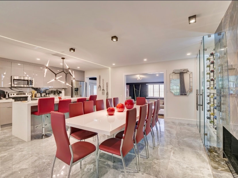 改造後的度假租賃房屋,有5間美麗的臥室和3間浴室。 房源是全新的,並配有專業家具。在美麗的泳池旁邊喝著雞尾酒,放鬆身心,四周環繞著五彩繽紛的樹木,周圍有充足的座位。設施包括超大開放式廚房+ 1個用餐區+泳池休息室+私人電影院+私人停車位。 -距離羅德岱堡機場15分鐘 -距離荷里活海灘20分鐘 -距離硬石體育場15分鐘路程