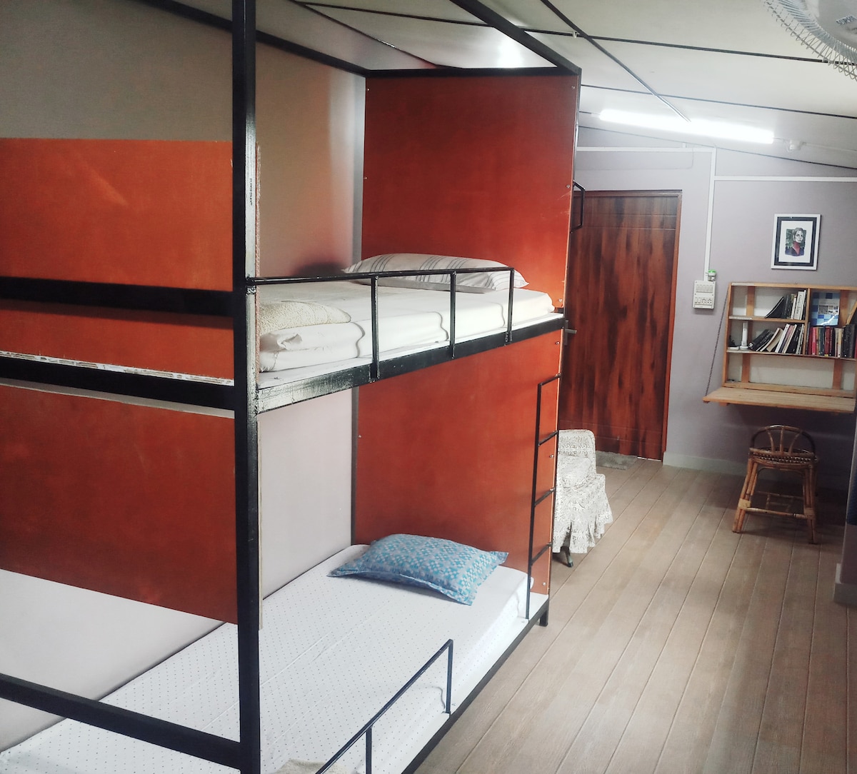 傳統的竹屋位於山坡一邊的建築羣內,提供充足的光線和通風和開放空間。 這是兩間小屋,附設浴室和寬敞的開放區域。 這間小屋就是其中一間。 小屋一側有一個壁爐。 布置精良的空間, 8-10人可以坐下來玩樂/烹飪等。 有一個公共小屋,配有開放式廚房,可供烹飪/燒烤/篝火。 廁所在外面。附近有自來水和一個有蓮花和百合花的池塘。