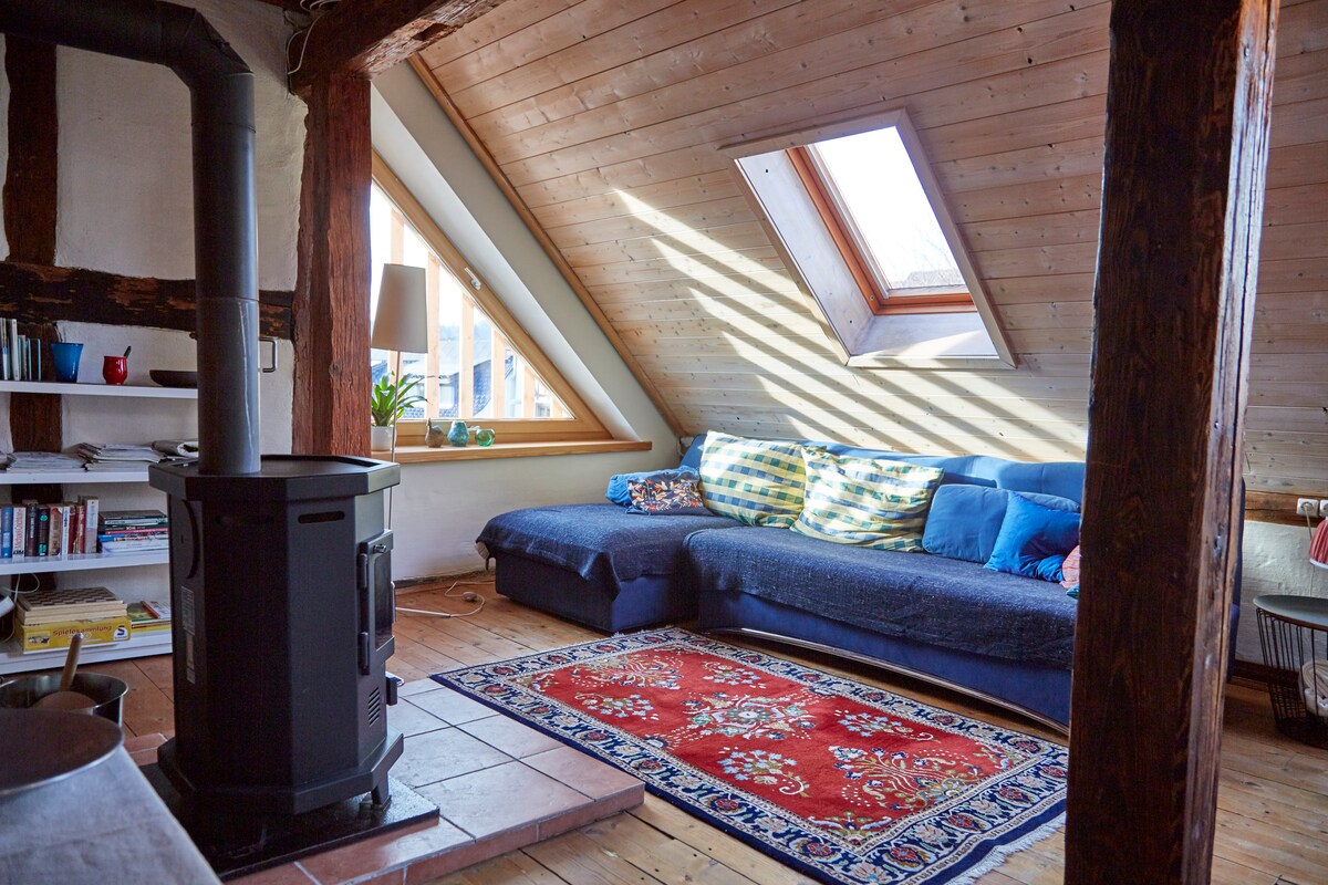 我們的度假公寓「Mühlenlounge」名副其實。我們住在一個古老的油廠,步行即可抵達迷人的哈斯拉赫市中心,那裡保存完好的木筋牆房屋令人印象深刻。 磨坊休息室具有閣樓特色,並保留了許多來自油廠時代的原始物品。儘管如此,這間度假公寓的技術水平仍處於現代水平,如電視、廚房設備、咖啡機、Wi-Fi等。