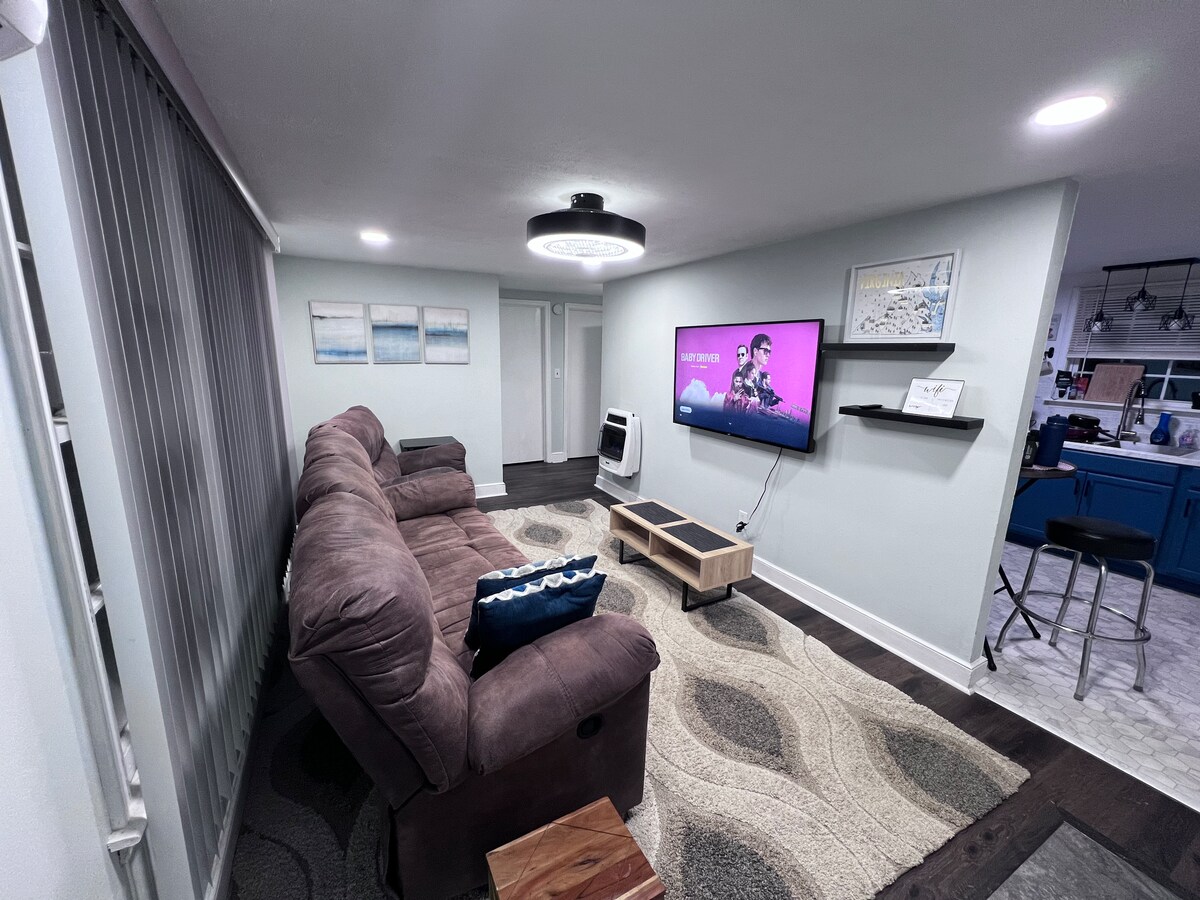 我們的房子真的很特別且獨特。我們希望您能享受這個空間!房子後面有一間巨大的獨立房間,配有客廳區域、電視、加大雙人床、大型獨立主浴室、可設定溫度(在範圍內)、日式床墊、衣櫃,可存放衣服或額外人員!提供小廚房設備、咖啡機、微波爐、冰箱、烤麵包機和George Foreman。 如果您需要的東西不在列表中,請告訴我們!