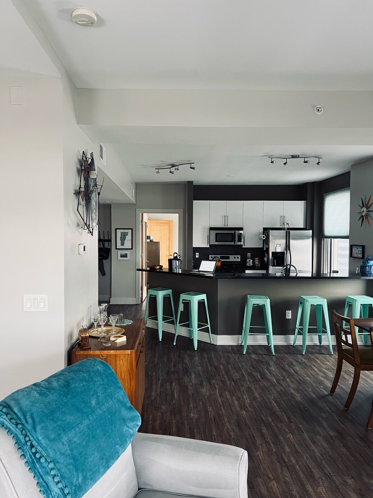 Welcome to Downtown Des Moines! The perfect centrally located 2 bedroom 2 bathroom Loft condo in the middle of it all! Walk to nightlife, shopping, restaurantes and entertainment. > Cozy and Convenient - the best location downtown! > 24/7 Fitness center > City view rooftop courtyard and dog park > Direct access to skywalk system > 1x King & 1x Queen Bed > Smart TV's in bedroom & living space > Dedicated work space > High speed Wifi > Fully Equipped Kitchen > In unit free Laundry > Pet Friendly!