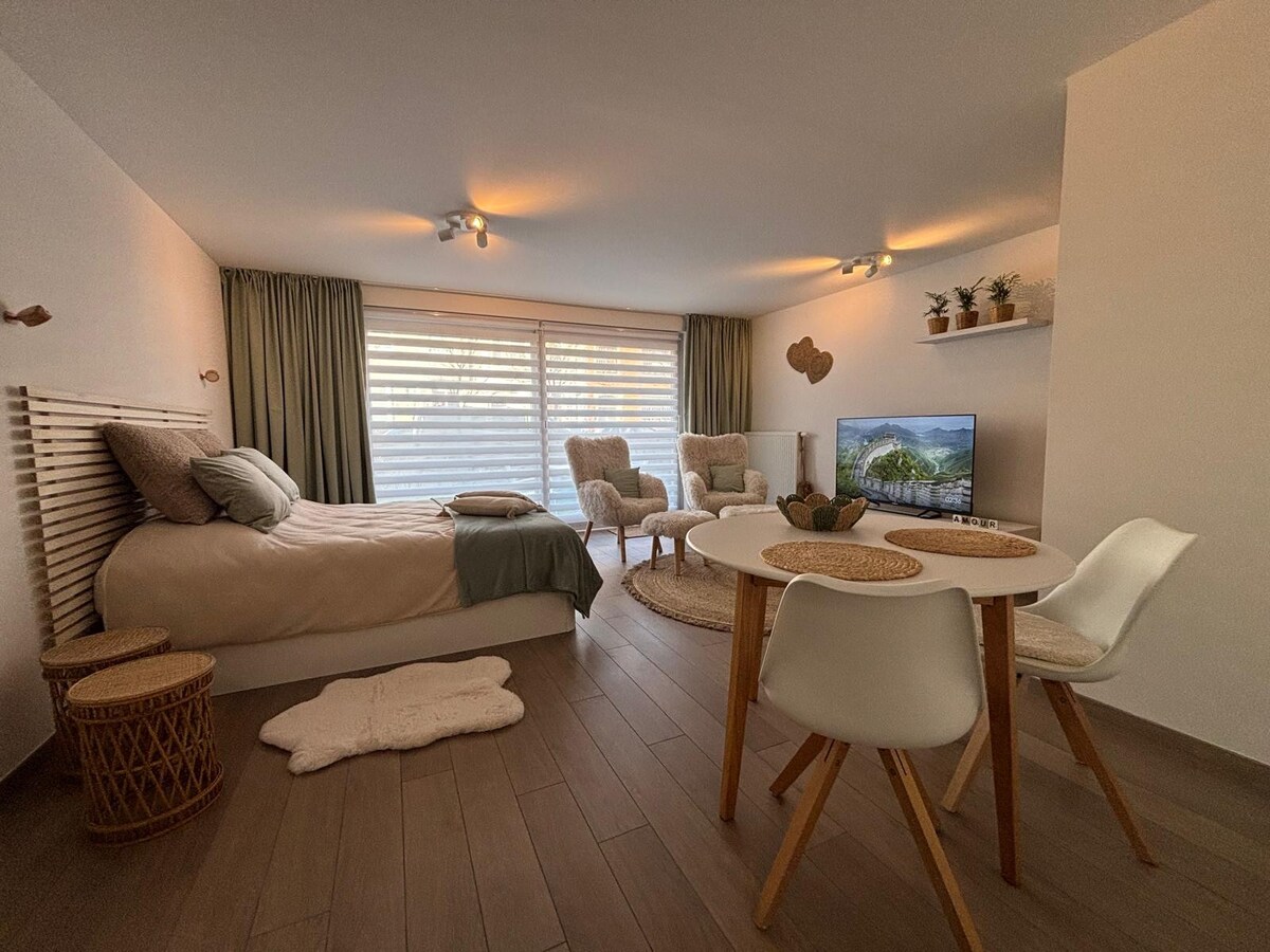Studio b-line Blankenberge is a renovated studio (35m2) with beautiful sea view on the Zeedijk (4th floor Sealing1). Terrace for apero or morning coffee. 2-person sofa bed + bedside cabinet with 2 single beds. Sheets and towels for rent, on request. Bathroom with washbasin, shower and toilet. 15km from Bruges, 1.3km from the train station and 1.3km Casino, restaurants, beach bars, sealife, serpentarium, in the Leopold Park: mini golf, children's playground, table golf, kids go-carts. Bike rental