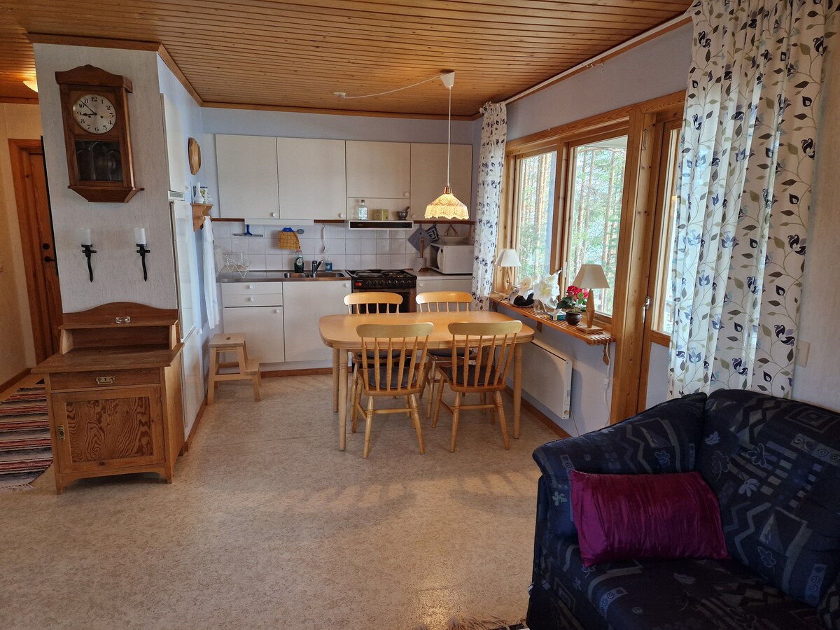 在大自然的寧靜輝煌中安頓下放鬆身心,但不要離開世界... Stuga就在河邊,為每個人提供了一些東西。 公寓非常適合2-4位成人或有兩個孩子的家庭入住。 客廳可以彈性用作臥室。 夏季的活動是在陽光下享受和放鬆、徒步旅行、採摘漿果、騎自行車、釣魚、遊泳等。 美妙的冬季邀請雪鞋之旅、冰上釣魚,享受寧靜和自然!