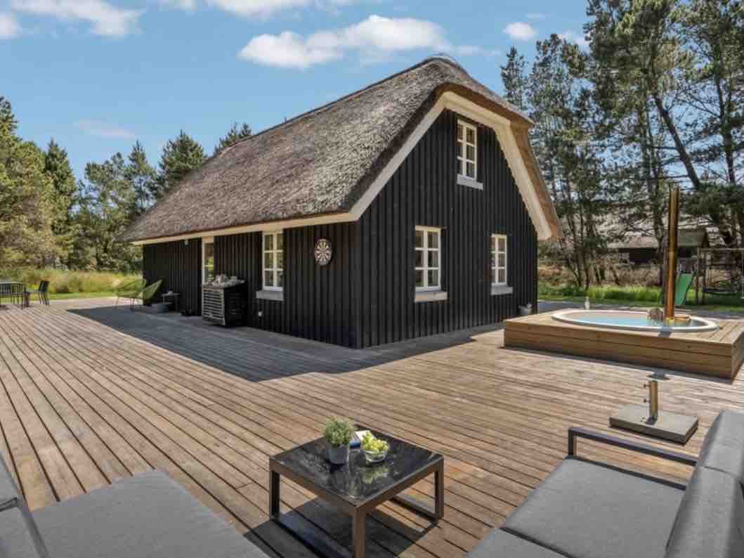 參觀這個全新翻修的田園風格木製別墅,享受美妙的氛圍。坐落在Skuldbøl的一大片起伏的森林地上。 一個美麗安靜的地方,有著自然美景和豐富的野生動物。 全新大露台,位於森林中。 步行8分鐘即可抵達林克堡峽灣(Ringkøbing Fjord)的新鮮空氣。這座迷人的房屋內部有著美麗的自然景觀,裝飾明亮,適合舒適放鬆的假期。在美麗的露台上享受寧靜的氛圍。