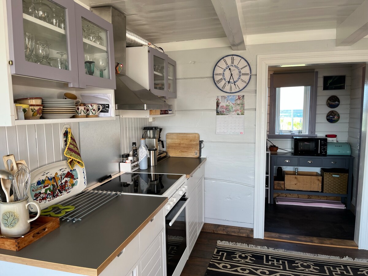 新建的復古風格公寓,位於以前的穀倉內。這個地方位於海邊和山脈旁邊的美麗位置。 最受歡迎的鯊魚和鮭魚釣魚地點。幾公裏長的森林道路可供步行。冬天,我們建立了一個合適的壁爐,享受北極光,這些東西經常在天空中美麗跳舞。