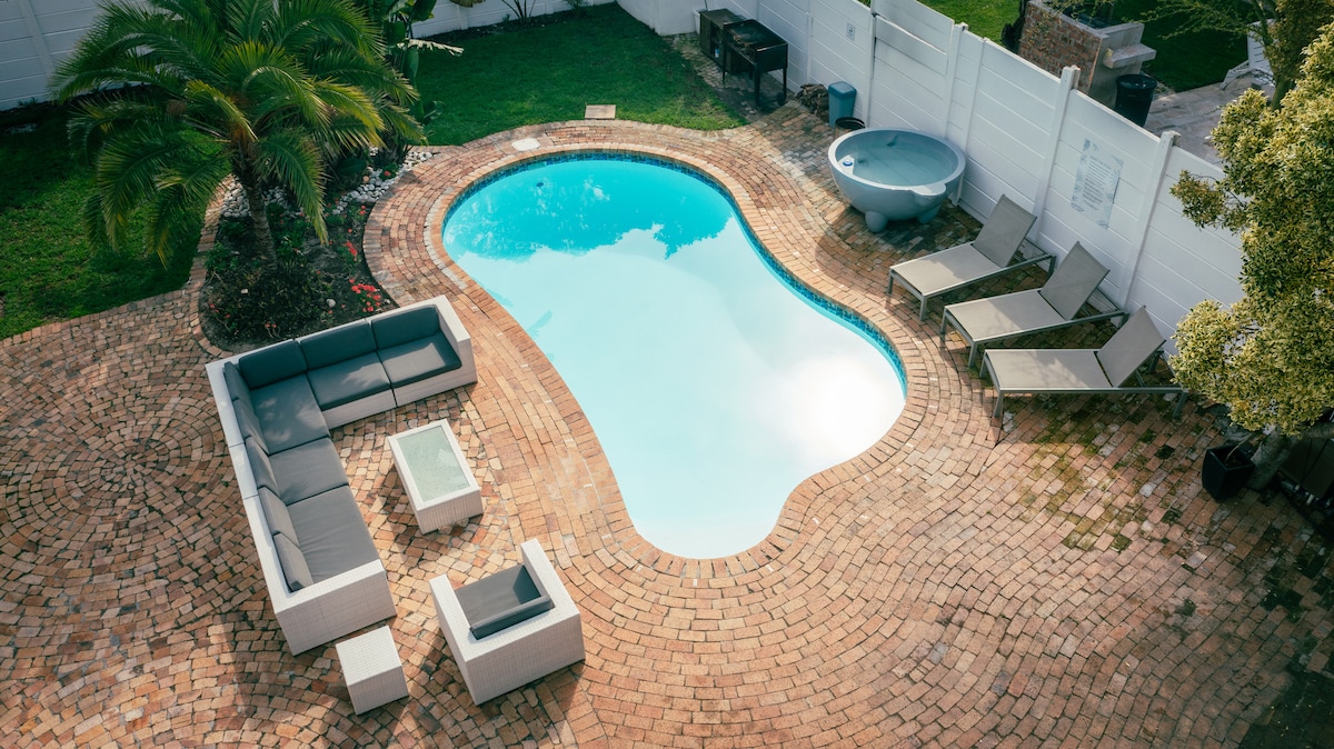 Welcome to Crown Comfort, a stylish and serene luxury retreat designed for couples/families seeking privacy, romance & effortless comfort — while still being perfectly connected to Cape Town’s top attractions. Step into your private, secure oasis featuring a heated pool, jacuzzi, outdoor lounge and dining area under a glass roof, plus a barbecue area and pizza oven — ideal for romantic evenings or relaxed al fresco dining. Secure parking behind an automated gate ensures complete peace of mind.