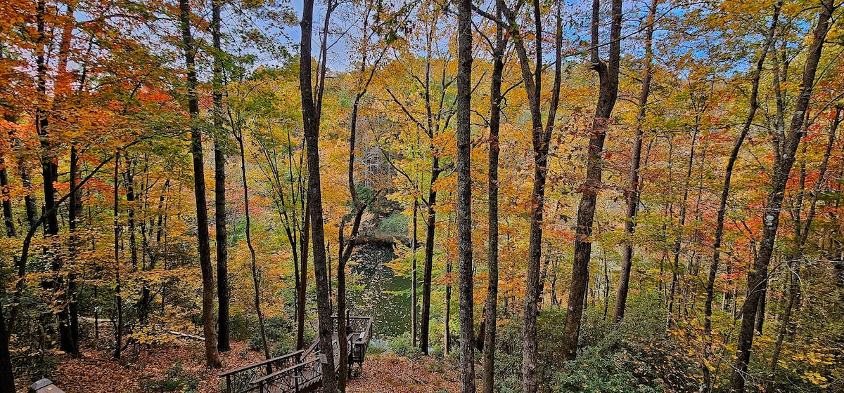 「這是我發現的唯一一個可以真正放鬆身心、從生活壓力中恢復過來的地方。」- Brandon 坐落在艾倫湖(Allen Lake)之上,位於北喬治亞山脈中迷人的藍嶺(Blue Ridge)和埃利傑(Ellijay)小鎮之間的櫻桃木(Cherry Log)(人口120人!),幾乎不可能不放鬆到我們湖畔「樹屋」的寧靜氛圍中。 「…這是一個奢華的地方,藏在森林深處,靜靜地坐落在湖上,就在美麗的瀑布下方。」-Rebecca