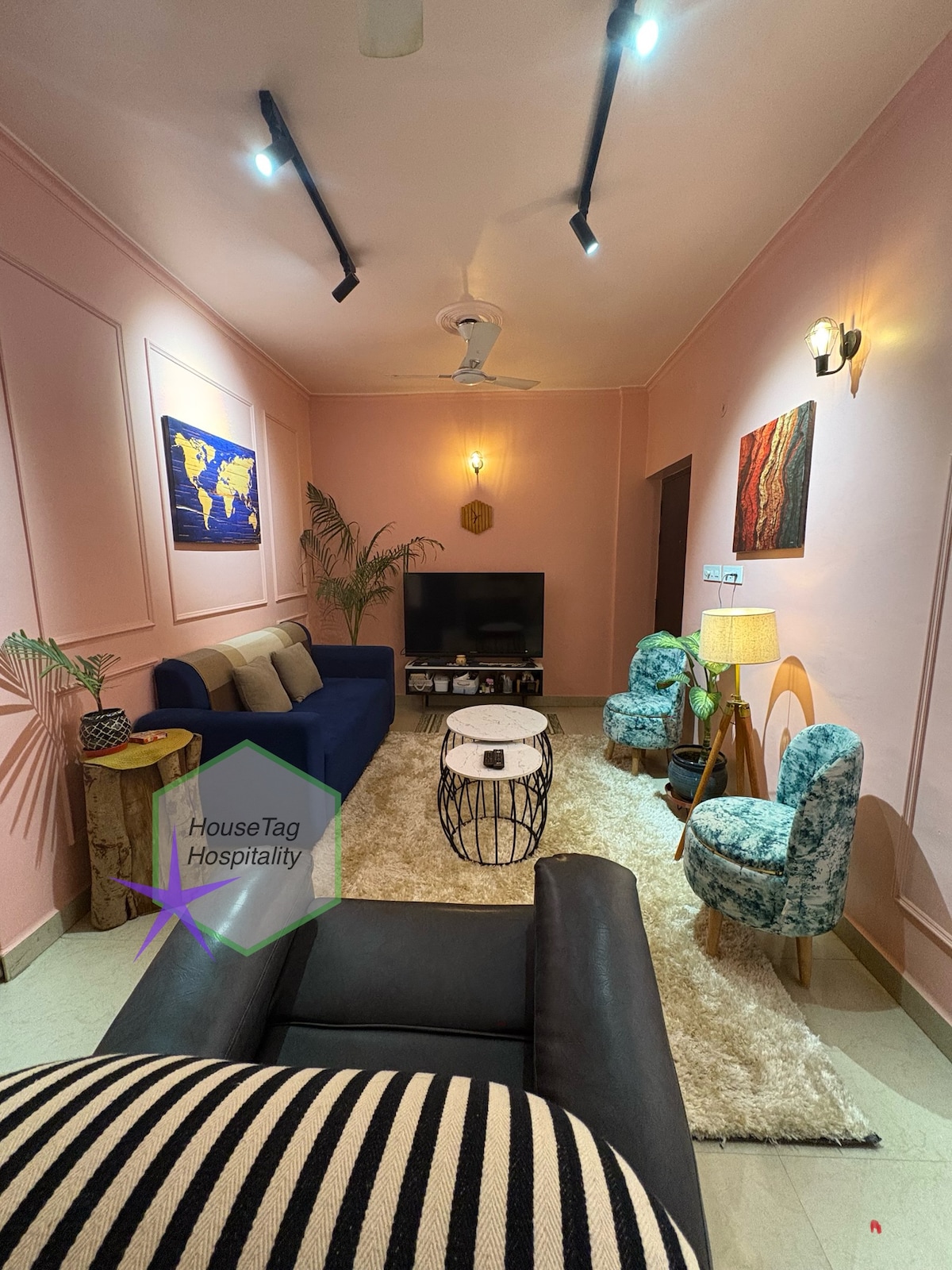 舒適的 1 房套房:安靜舒適的完美選擇! 在迷人的1BHK套房享受寧靜的度假。套房提供: 2 張舒適的雙人床,讓您安心入睡 寬敞的沙發,可供 6-8 人放鬆身心、聊天 設備齊全的廚房,配有餐具、微波爐、冰箱等 配備間歇泉和淋浴間的清爽浴室 為您的車輛提供安全的停車位 此空間非常適合單獨入住或最多入住 5 人,確保您在入住期間能享受舒適、放鬆的體驗。 我們提供汽車/自行車/Activa租賃服務!
