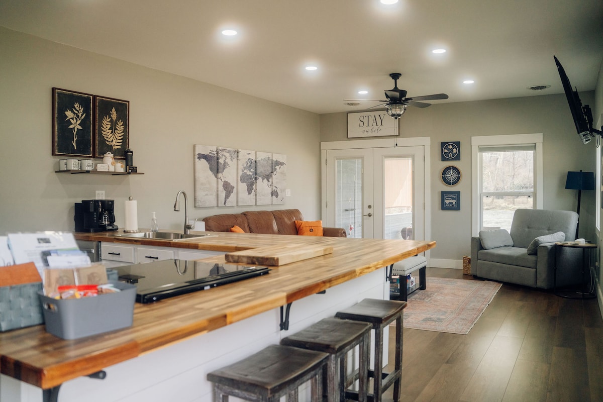 坐落在距離南霍爾斯頓河( South Holston River )不到一英裏的地方,以其一流的鱒魚釣魚而聞名,距離充滿活力的布裏斯託爾賽車場( Bristol Motor Speedway )僅一步之遙。 (距離不到一英裏) 走進我們的屋頂露臺,挑戰您的朋友打乒乓球,在熱水浴缸中放鬆身心,或享受超大版本的Connect 4、Corn Hole、Checkers和Jenga。 在我們的小綠地上練習您的推桿技巧,同時欣賞全景。