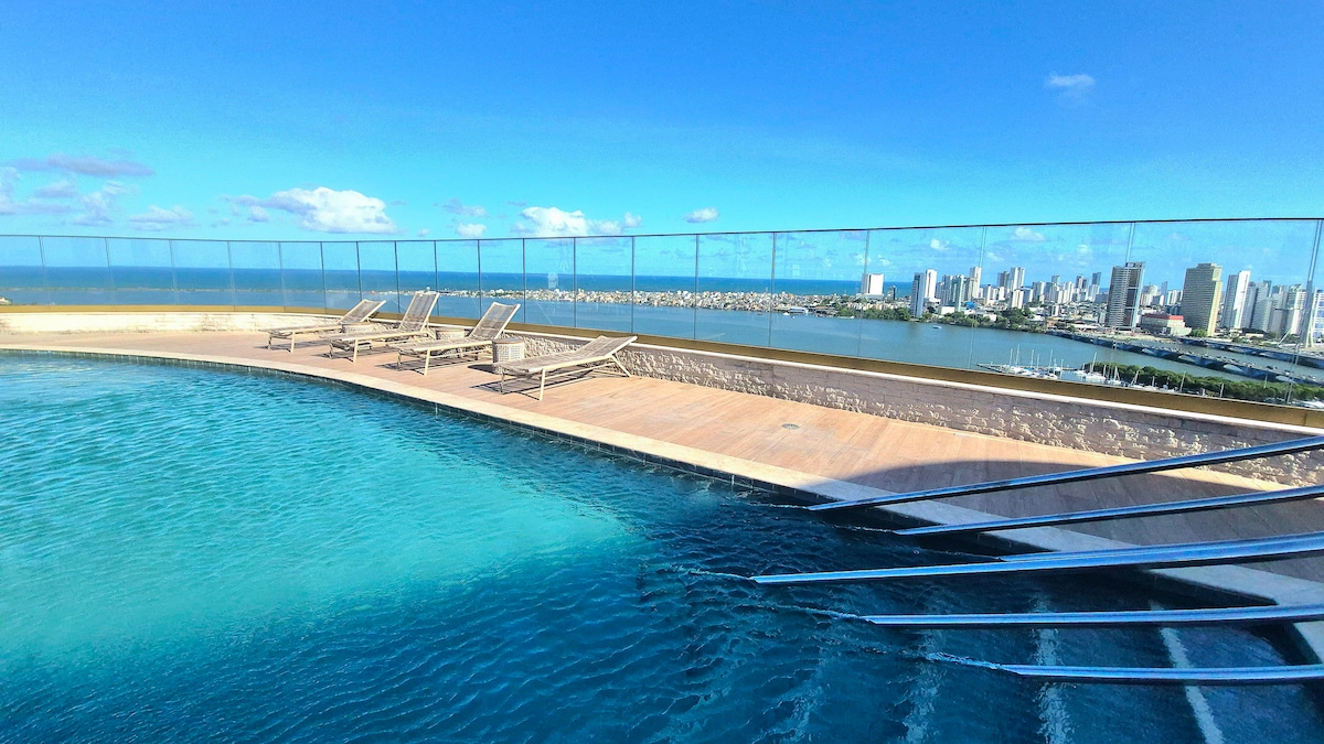 公寓的裝飾和建造考慮到最小的細節,讓客人有一個很好的住宿體驗。 我們的空間配備了微波爐、迷你吧、咖啡機、可觀看Netflix的智慧電視、240兆Wi-Fi網路等所有必要設備,讓您住得舒適。我們位於累西腓最有價值的地區Av Boa Viagem(Beira Mar)。 靠近RioMar購物中心、市場、5公里的醫療中心、餐廳和小酒館,提供各種美食,您可以在這裡找到累西腓的最佳體驗。