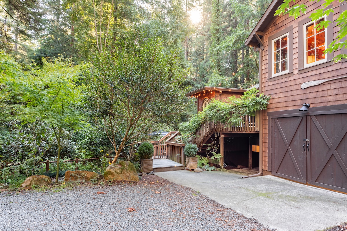 * *最近翻新/重新裝修!* *這間房子由建築師Don Jacobs命名為「牧場之家」,這間更新的70年代小木屋是一個具有現代感的森林度假勝地。房子四周環繞著紅木,有2個大露台,1個帶有丙烷火坑和充足的座位,另一個帶有熱水浴缸。客廳有森林景觀的窗戶和Morso燃木爐。我們鼓勵房客享受徒步道、泳池和戶外設施。房源可舒適入住4人,並提供光纖網路
