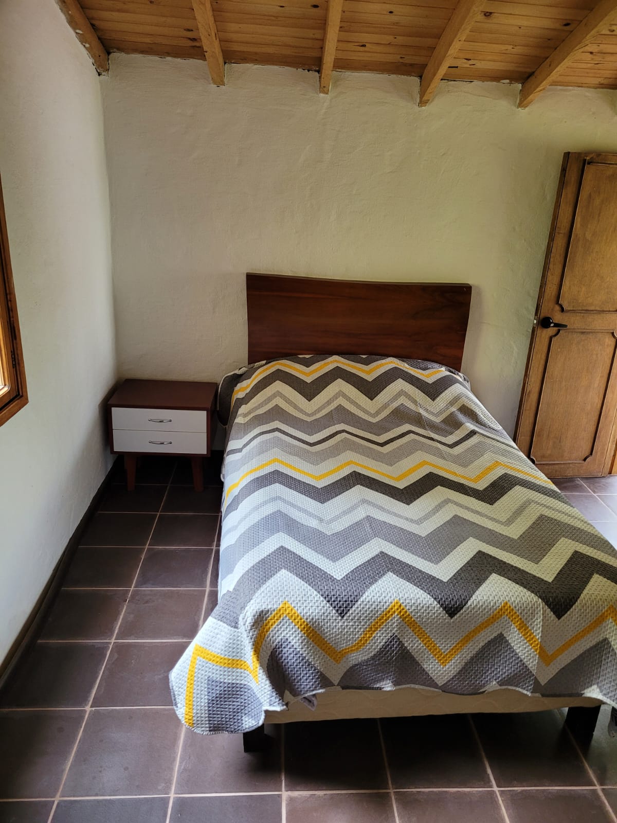 我們為您提供一個非常舒適的鄉村別墅,四周是大自然,可欣賞全景,室內壁爐剛剛翻新,全木質,包含所有服務、熱水、WiFi、電視。 它包括一間帶有附屬浴室的主房間、一間社交浴室、餐廳、全功能廚房、停車場和充足的戶外空間。 距離波哥大只有30分鐘的路程。 遠離城市,享受這個美麗的地方的難忘住宿。 我們有一些友好的寵物。