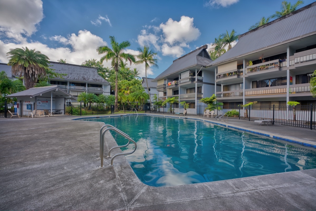 Waiakea Villa的Hilo單間公寓,配有泳池和陽臺