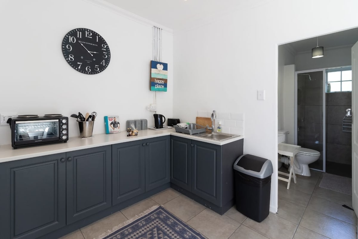 你一定會著迷於這個可愛住處的魅力。一樓有1間自炊式臥室,步行即可抵達海灘,可容納4人家庭,孩子們可在起居區的沙發床上入住。房源配有廚房、一間浴室和休息室,配有全套DSTV花束和免費WiFi ,以及配有瓦斯烤肉架的舒適露臺。因為有太陽能,所以不會有電力中斷。步行即可抵達當地便利商店和餐廳。