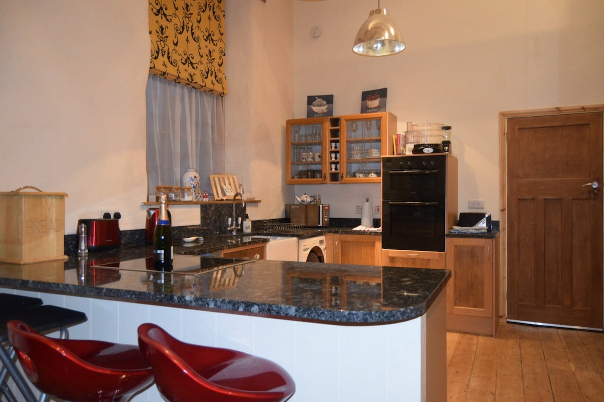A beautiful restored Old School (self contained )central to key attractions in Cornwall. You’ll love the high ceilings, comfy bed, light yet cozy feel. There is a space in the lounge area for extra guests/children. A fully equipped kitchen at your disposal helps you to prepare something scrummy from the hamper of goodies supplied on arrival, and included in your booking price. Perfect for couples (with/without children) and pets. You have your own private entrance & garden with parking.