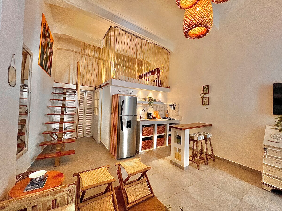位於卡塔赫納市中心的1 BR Loft套房,靈感來自世界上最好的5星級飯店。位於舊城牆內,步行即可抵達商店、娛樂設施、餐廳、夜店和酒吧。享受入住這個充滿歷史和興奮的聯合國教科文組織遺產小鎮。設備精良的廚房,備有洗衣機/烘乾機、加大雙人床、拉出式雙人沙發、電視、Netflix和3000 Wi-Fi。我們的現代海灘氛圍公寓非常適合情侶享受和放鬆。