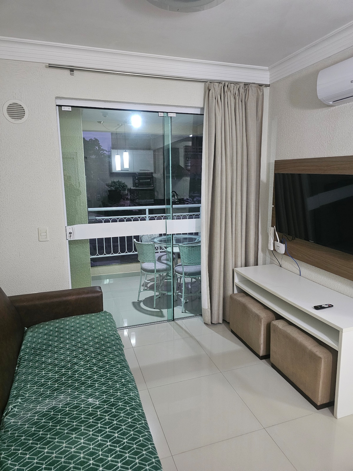 -1間雙人宿舍,配有電視和空調。 -Banheiro -客廳配有舒適的沙發床、電視和冷氣。 -完整廚房,配有定制家具、爐台、冰箱、微波爐和基本餐具。 有3個座位的陽臺 - Sacada配有燒烤設施和4人的桌子。 -服務區域有洗衣機。 -1 個停車位,視情況而定 -房客必須自備床單和毛巾- - Wi-Fi (免費提供給房客,不包含在每日價格中