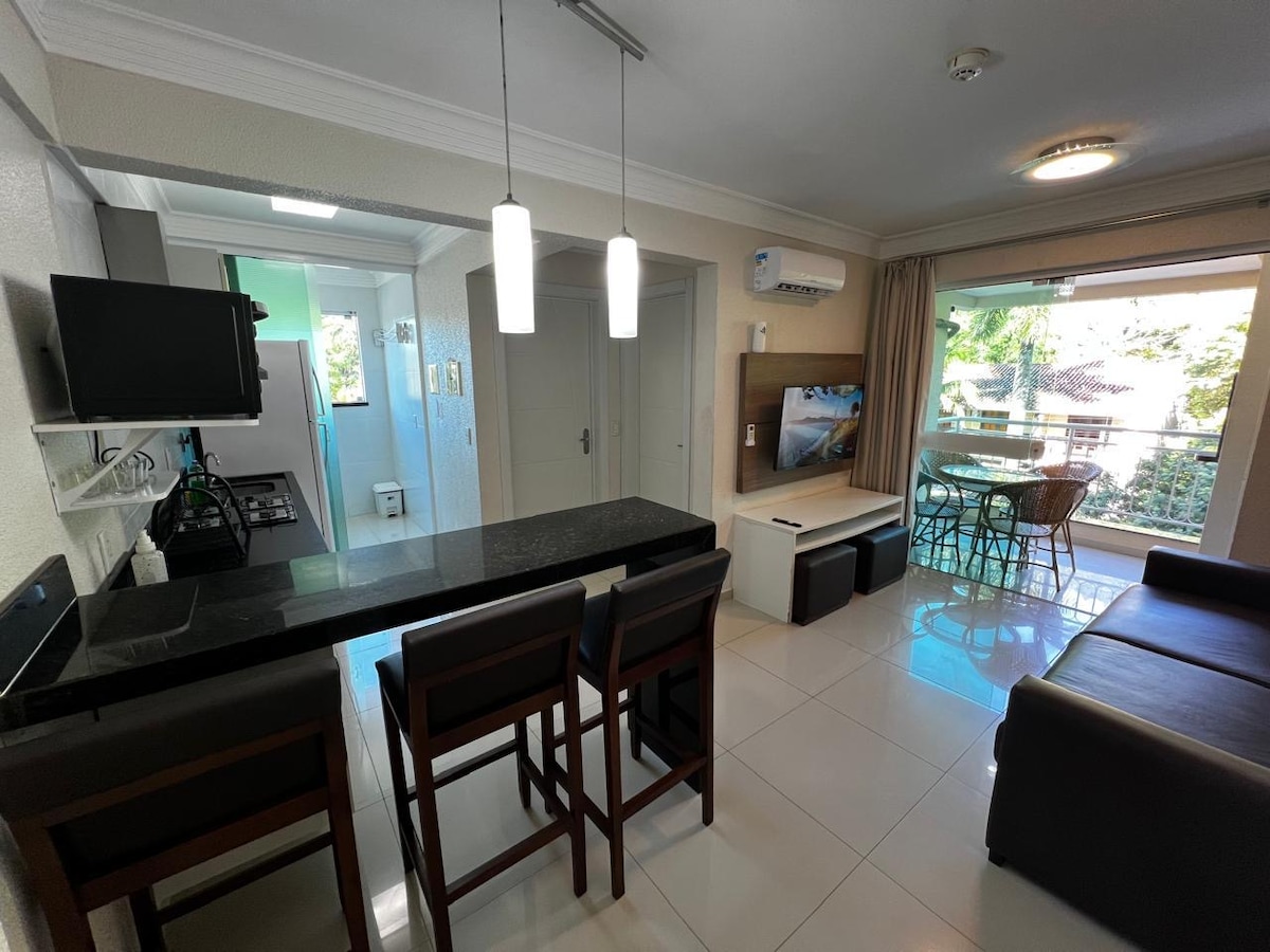 -1間雙人宿舍,配有電視和空調。 -Banheiro -客廳配有舒適的沙發床、電視和冷氣。 -完整廚房,配有定制家具、爐台、冰箱、微波爐和基本餐具。 有3個座位的陽臺 - Sacada配有燒烤設施和4人的桌子。 -服務區域有洗衣機。 -1 個停車位,視情況而定 -房客必須自備床單和毛巾- - Wi-Fi (免費提供給房客,不包含在每日價格中