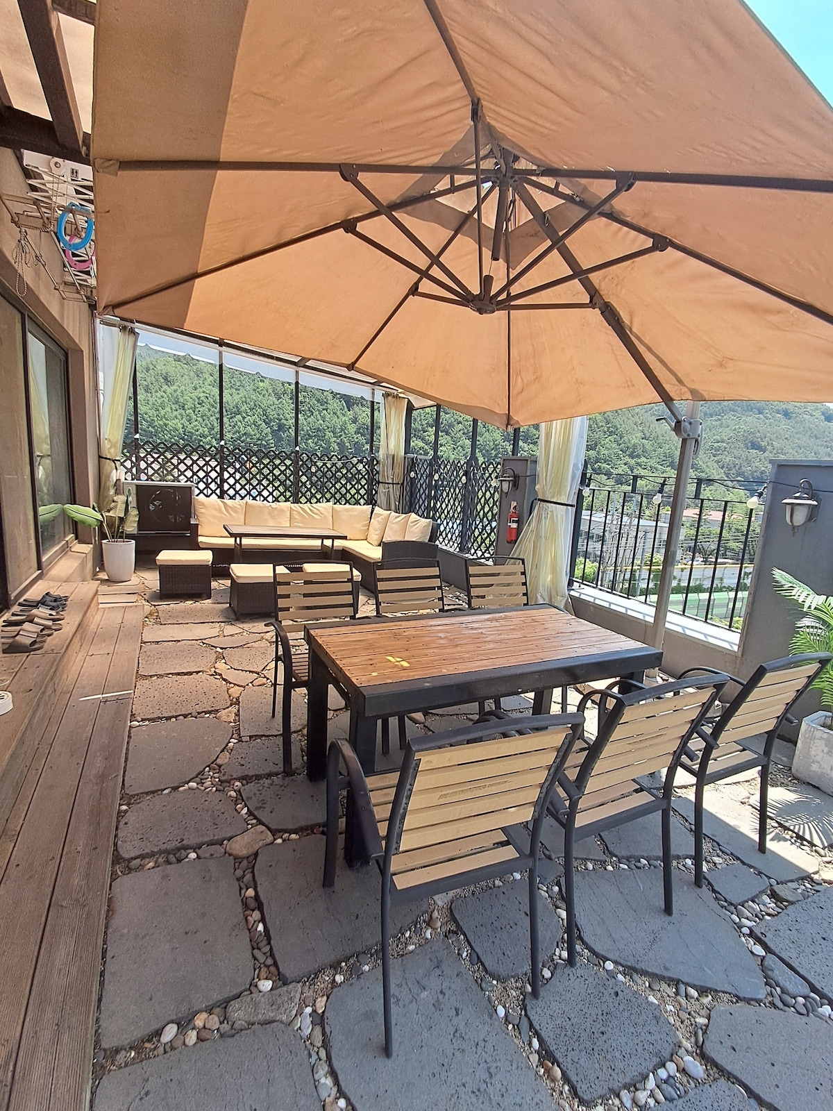 Youcheon house, 房子前面有涼爽的山谷和免費的平台
