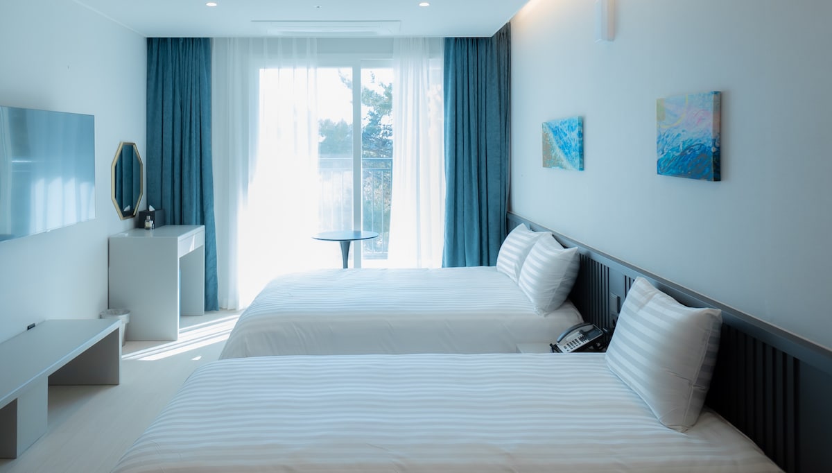 Magic Carpet Ride Room 202 「雙牀房」,您可以多加一張牀作為沙發牀。 Yangyang Hot Place Population, Jukdo Guesthouse Magic Carpet Ride. 雙人房、雙牀房、家庭房、宿舍式不同房間類型。 步行30秒,人口海灘( Population Beach )上最好的衝浪點就在前面。 最近,酒吧、夜總會和名為Yangnidan-gil的餐廳等各種商店排隊,因此您也可以在週末或旺季享受夜晚。 房客可享受衝浪特別折扣和上東披薩俱樂部的特別折扣!