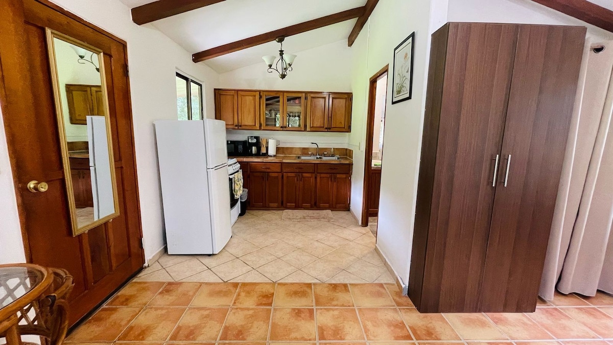在我們的新客房放鬆身心。 配有小廚房、Netflix電視、標準雙人床、閣樓(請注意-房源內有樓梯)、浴缸、露臺和Alto Boquete的舒適起居區。 免費停車、咖啡、WiFi和熱水。 友善、知識豐富的房東可以回答有關該地區的任何和所有問題,甚至可以幫助您預訂一些旅程! *請注意*客房與房東的房源在同一個物業,但獨立實體,有自己的停車位和入口