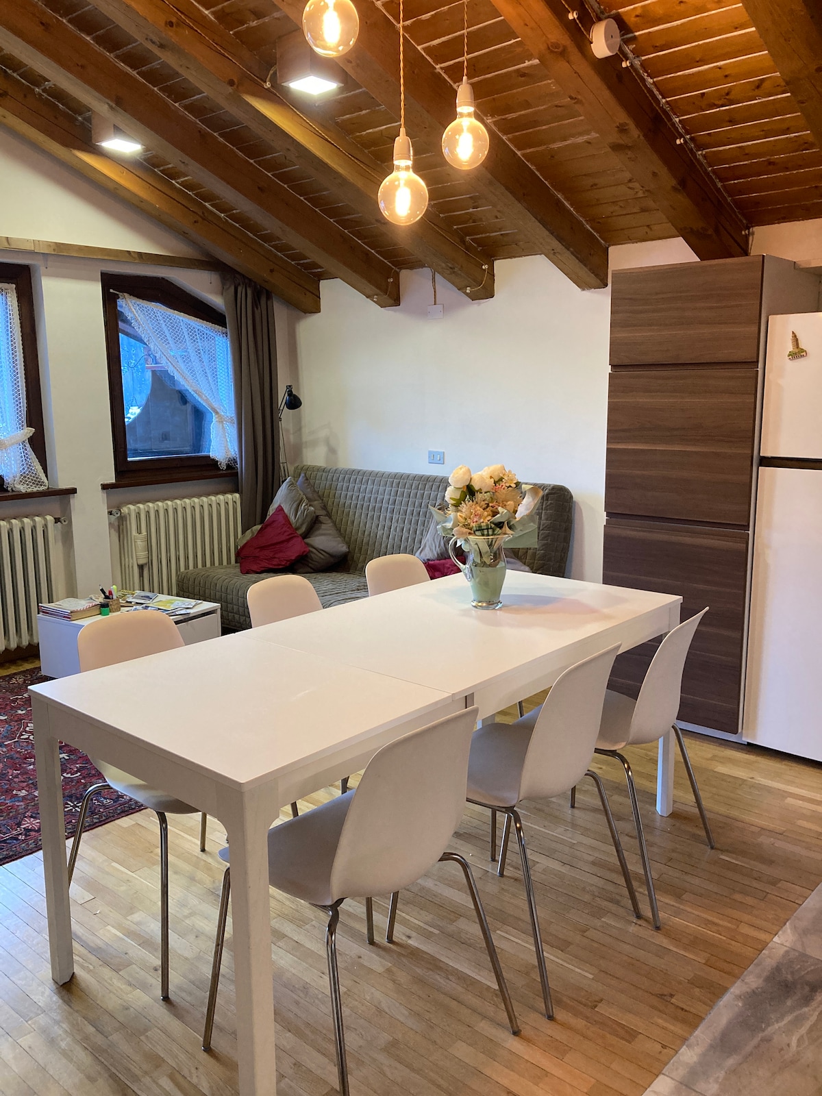 Questo appartamento unico e originale è stato ristrutturato con amore e cura. Un perfetto connubio di elementi nuovi e antichi, crea un'atmosfera calda e accogliente. Il grande soggiorno è un luogo speciale dove rilassarsi dopo una giornata intensa. Il punto forte dell'appartamento è la splendida terrazza in legno esposta a sud, ideale per godersi il sole. Come proprietari, ci prendiamo molta cura di ogni dettaglio e ci dedichiamo a una comunicazione personale con i nostri ospiti.