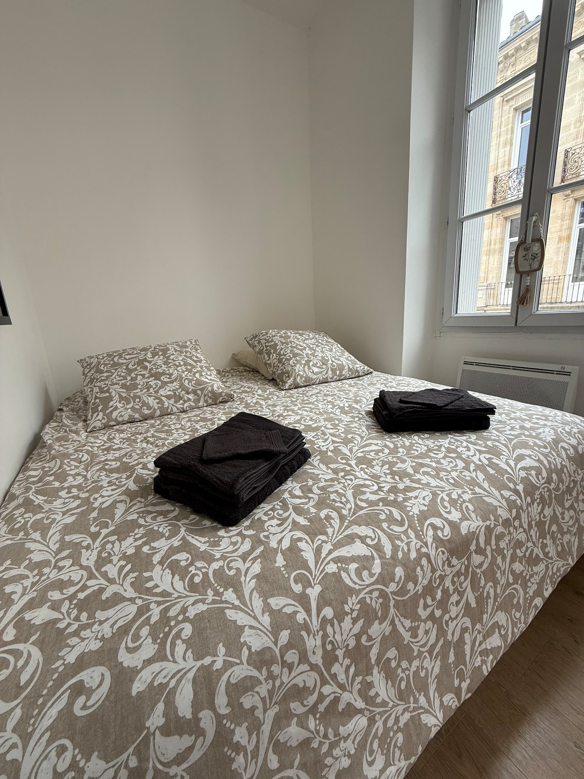 歡迎來到這間明亮的單間公寓,布局獨特,就在波爾多市中心! 免費停車位(在波爾多必不可少) 地理位置優越:大樓旁有商店、餐廳、交通工具和景點。 24小時自助入住、高速WiFi ,一切都經過精心設計,讓您感到舒適。 設備齊全的廚房、標準雙人牀、影片投影機...您不會錯過任何東西。 提供線條和牀單。 無論您是情侶、家庭或商務旅客:歡迎入住