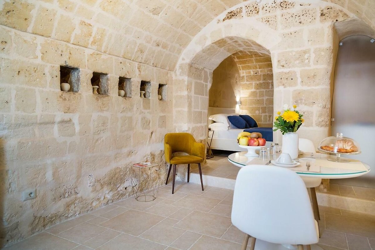No. 11坐落在馬泰拉舊城區的中心,Sassi。令人驚嘆的景色曾在幾部電影中出現,如詹姆斯·邦德、基督受難記和本·赫爾。這座歷史悠久的房屋擁有令人驚嘆的拱形砂岩天花板和以斯堪的納維亞-義大利風格裝飾的房間。 寬敞的臥室、套房浴室和小型休息區,從街上有私人入口。 地理位置優越,但不適合膽小者,有很多台階,但值得。帶上您的運動鞋!