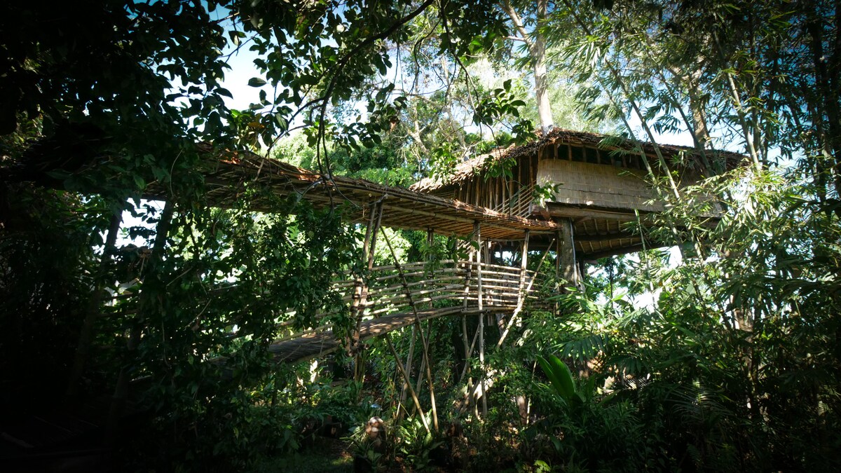 竹樹屋建在客房花園的樹木上。在地上約7米的地方,您會發現獨特的有機建築。 熱帶活動風格純粹,四周是大自然,天花板上有清新的微風。感受不同,享受加裏曼丹的感受。