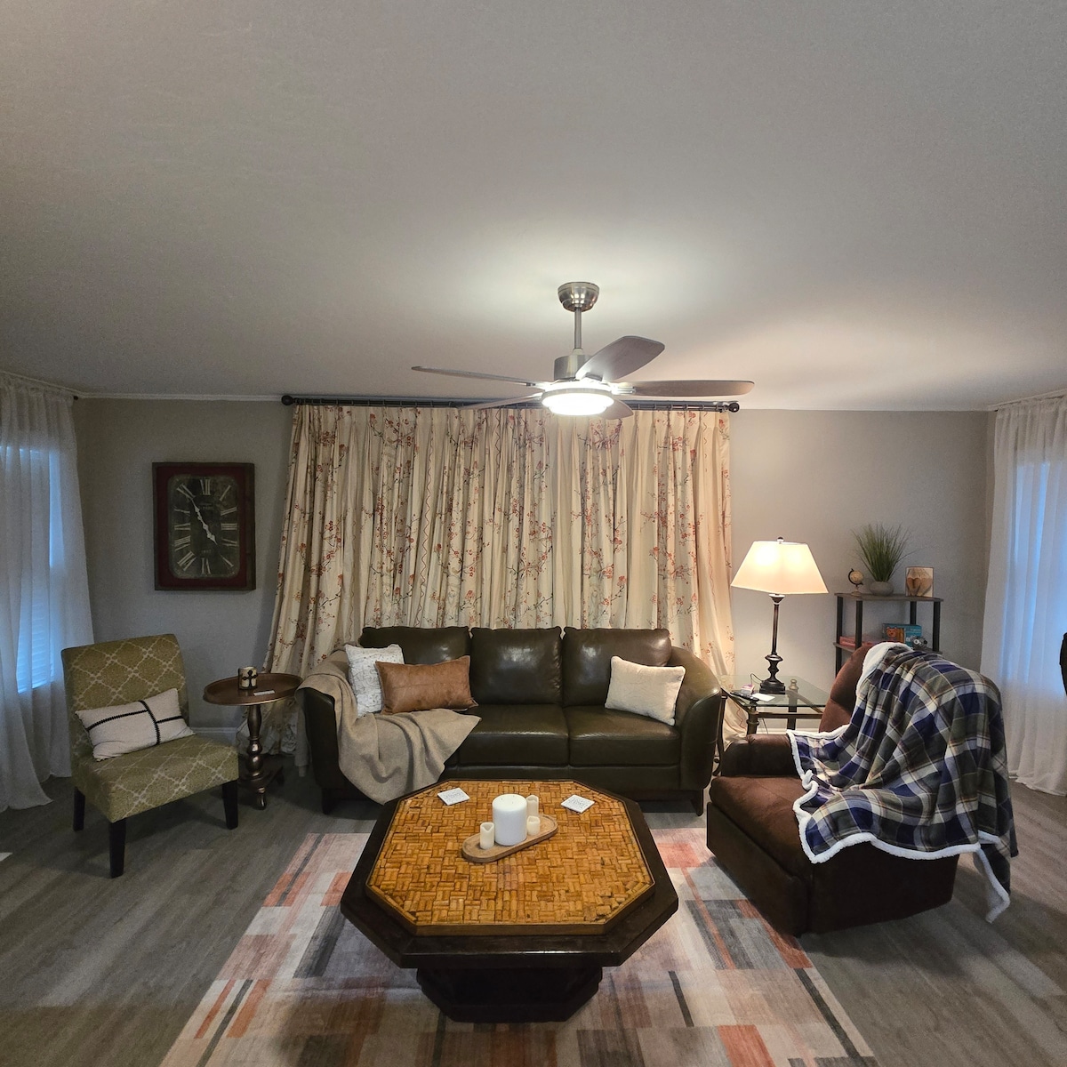 這間新改造的客用住房位於一個安靜的0.75英畝地塊的後面,周圍有樹木,後面有一個封閉的室外淋浴間。 臥室有大量儲物空間,配有舒適的加大雙人床、2個大衣櫃和一個大梳妝台。 客廳包括一張標準雙人沙發床;一台智慧電視;封閉式洗衣機和烘乾機。配備了大量櫥櫃空間和廚房內有凳子的吧台。 沙發後面的桌子上有額外的座位。