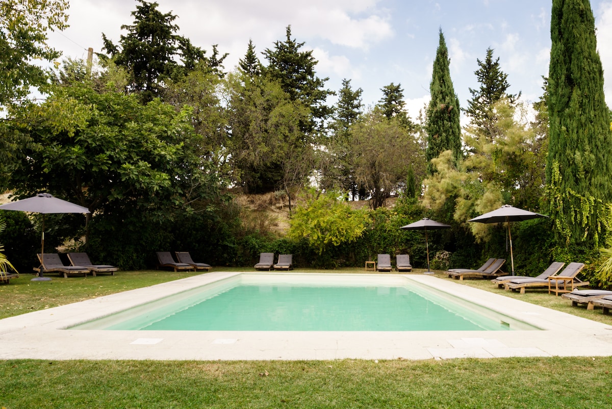 Salonenque is onderdeel van ons Domaine met in totaal 5 huizen voor gasten. Die zijn allen rond de binnenplaats gelegen maar met voldoende privacy. Salonenqque heeft als enige huis een privé tuin. Het zwembad wordt gedeeld met de andere gasten en is op een ander niveau. Tussen het zwembad en de huizen is een hek voor de veiligheid. Naast het zwembad is een grote loft die gedeeld wordt met alle gasten. Er zijn voldoende ligbedden voor iedereen. Het Domaine was de eerste nederzetting van het dorp L' Isle sur la Sorgue en ligt er nog steeds " boven". Alle huizen zijn voor de huurders privé en worden niet gedeeld. Het zwembad wordt wel gedeeld, evenals de prachtige loft die ernaast staat . De wasmachine is in een aparte ruimte en wordt gedeeld. Er is altijd iemand aanwezig. We hebben een (NL) beheerders stel. Een stukje authentieke Provence. Met prachtig licht, veel zon en bij ons in de buurt nog weinig van de bling bling van de Cote d' Azur te merken. Om ons heen veel schattige oude romeinse dorpjes en prachtige natuur. Ons eigen dorp is levendig door het hele jaar heen, er zijn altijd restaurants en terrasjes open. De kust is een uurtje bij ons vandaan, de wijnstreken liggen op 20/30 minuten Trein en bus zijn in het dorp. Dat is ongeveer 20 minuten wandelen of iets meer dan 5 minuten met de fiets. Fietsen zijn beschikbaar voor onze gasten. We liggen landelijk, kleine weggetjes, maar op slechts 5 fietsminuten van het dorp.