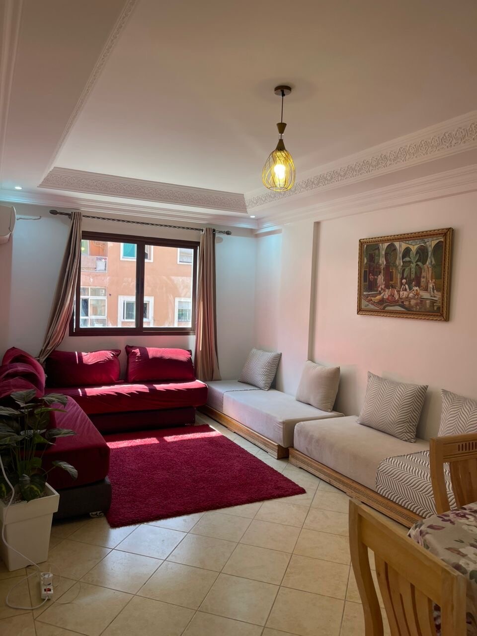 美麗的 142 平方公尺公寓,配備家庭自動化系統,3 間臥室,配備露臺景觀(僅 1 間可使用)、客廳(配備 IPTV/Netflix 電視)、設備齊全的高端廚房。1 間衛浴室、1 間淋浴間(配備馬桶和洗衣機)。 所有房間配備 LG 空調,並配備高級家具。 距離馬若雷勒花園(Majorelle Gardens)2分鐘路程。 飯店般的舒適(醫療級寢具)、語音控制、快速 Wi-Fi。7 月前可享 30% 折扣:為了補償白天附近的施工工程,此折扣僅適用於白天。