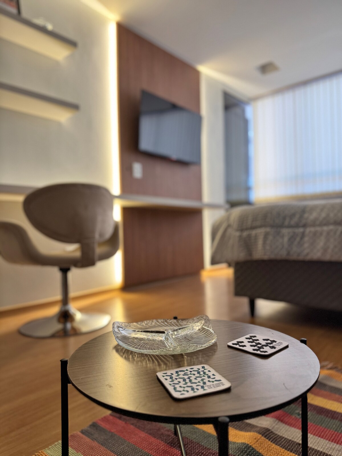 在這個安靜且地理位置優越的地方擁抱時尚。 「Praiana」單位是您在巴西利亞的時尚、寧靜和完美位置。它位於Plano Piloto,距離超市、餐廳、24小時藥店、麵包店、大廳、咖啡廳僅幾步之遙。 我們在房源內提供洗衣機和烘乾機。這是一個小空間(18 平方米),擁有您需要的一切。配備齊全的廚房、吹風機、熨斗和獨特的裝飾。 設計裝飾!
