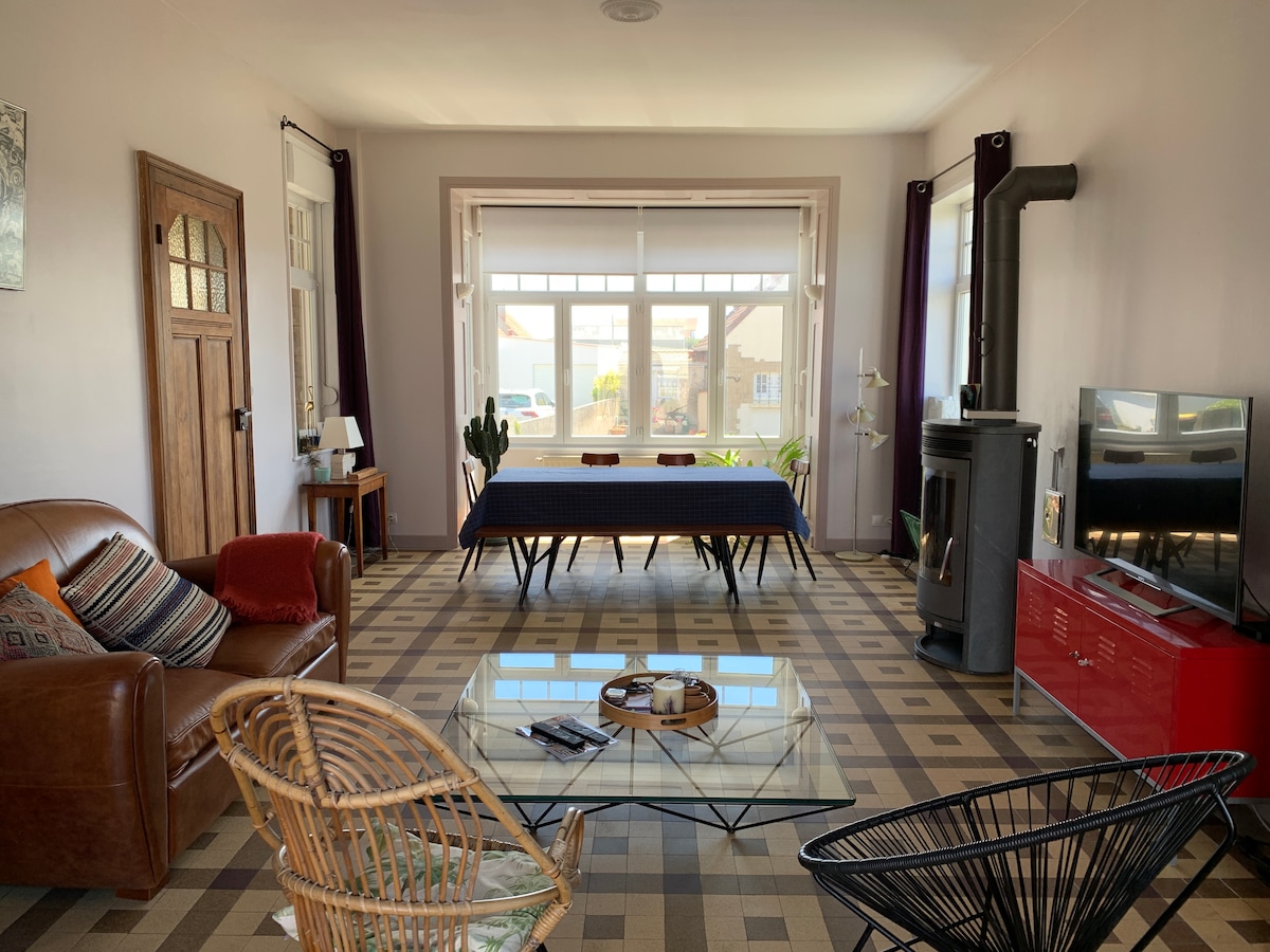祝您在Opal海岸住宿愉快,我們很樂意歡迎您入住我們的房源。 您在樓上有一間臥室,配有獨立浴室和早餐。 共用露臺,小海景。 Ambleteuse是一個坐落在Baie de la Slack、Cap Gris Nez、Cap Blanc Nez之間的村莊,其標記的健行步道(Gr120、EV4)。堤防步道會讓您看到堡壘、海灘和岩石。 步行即可抵達餐廳和海灘。