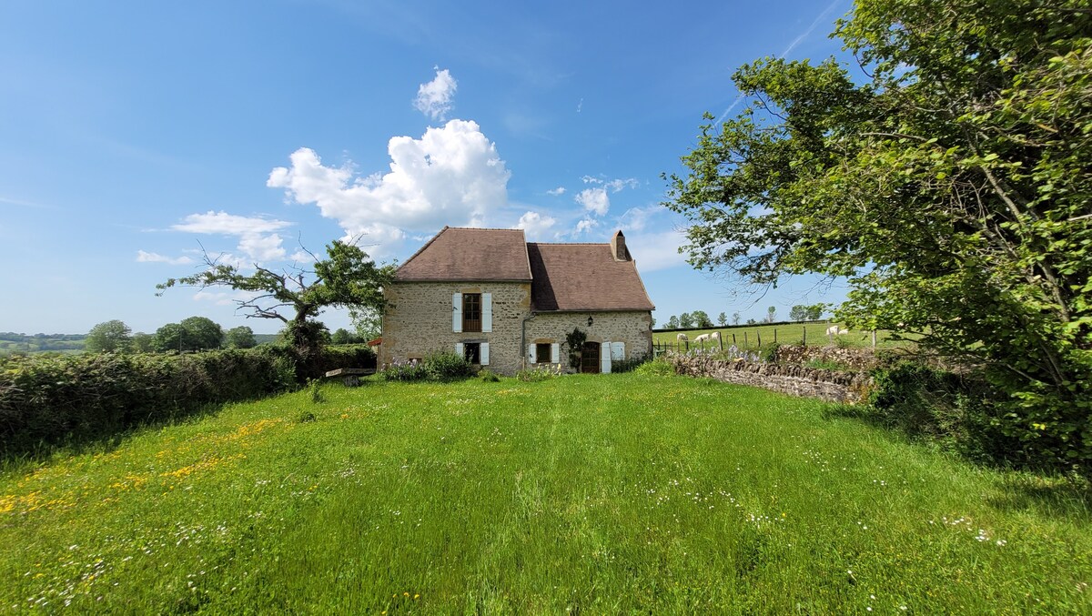 Ancienne fermette isolée dans un paysage de champs et bois (village à 3 km) Elle offre un séjour de détente pour toute la famille ou 2 familles pour balades dans le Morvan. 8 couchages 4 chambres 1 chambre avec lit 2 personnes 160 cm 3 chambres avec chacune 2 lits simples 1 grande pièce salon et salle à manger (45m2) 1 cuisine 1 salle de d'eau (douche) 1 WC 1 mezzanine 1 auvent avec table pour repas extérieurs à l'ombre 1 table extérieure pour repas 1 grange 1 terrain de pétanque